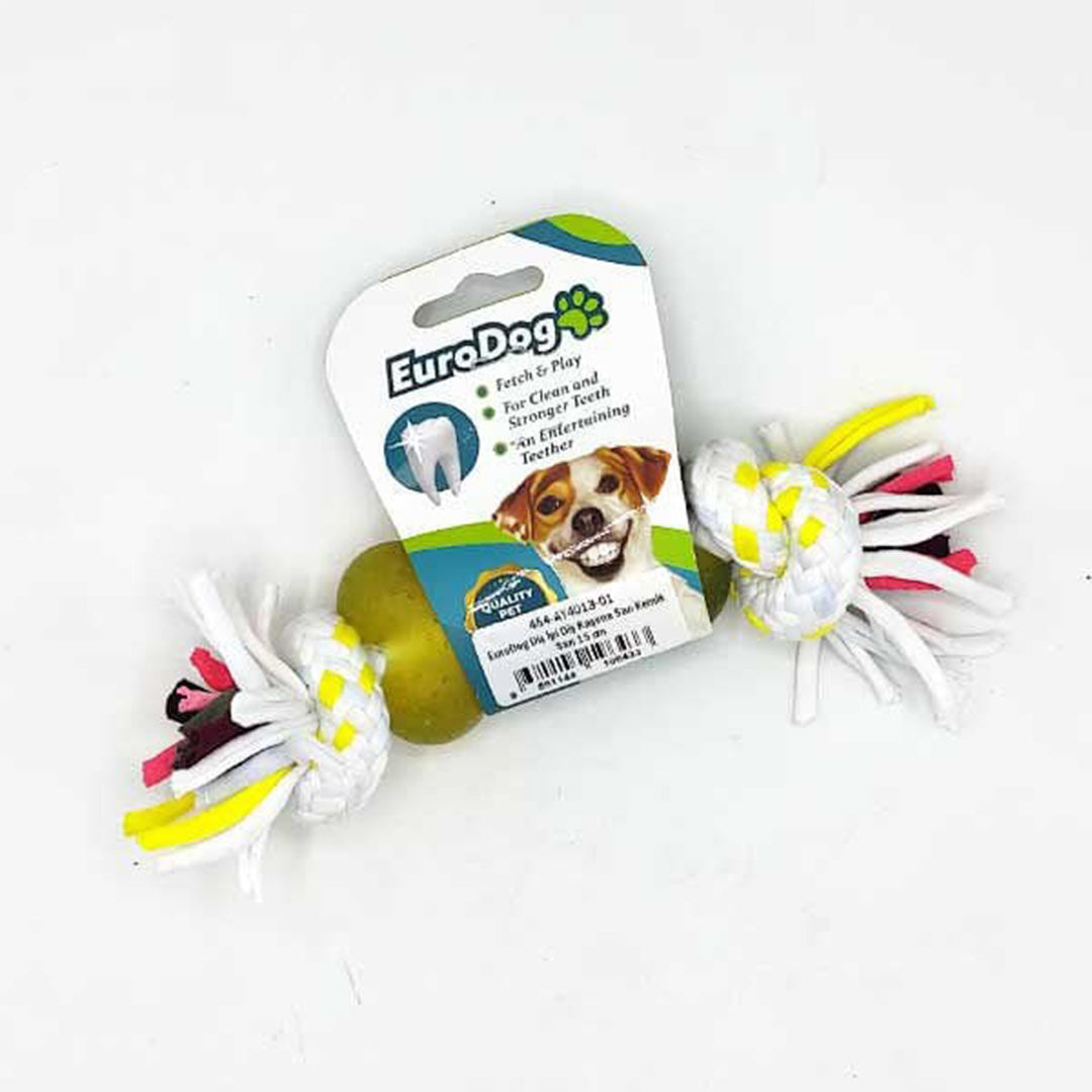 حبل مضغ أسنان الكلب من يورو دوغ بشكل عظم صفراء 15 سم