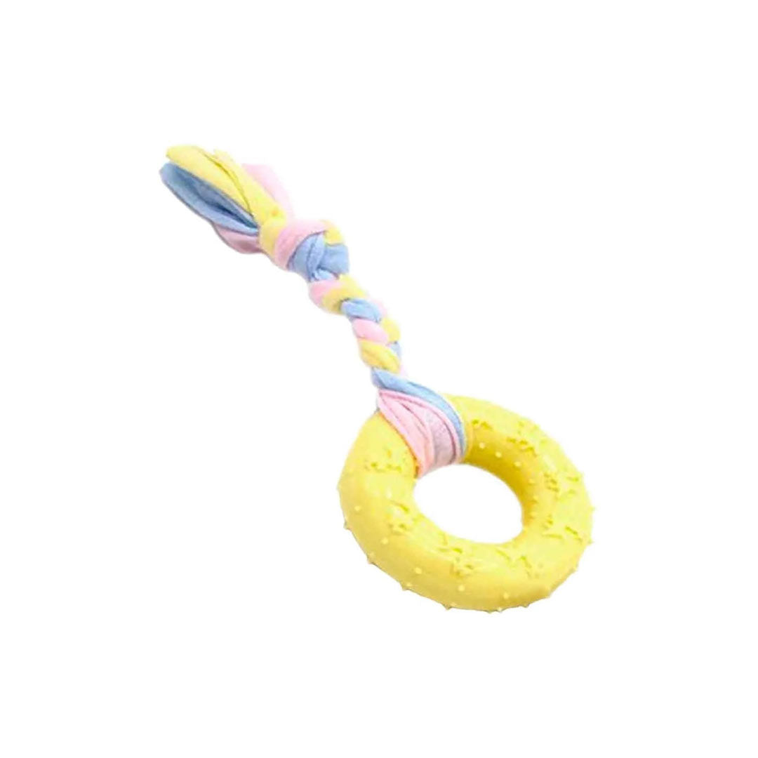 يورودوج خيط تنظيف الأسنان المطاطي الدائري الأصفر لعبة الجرو 16 سم