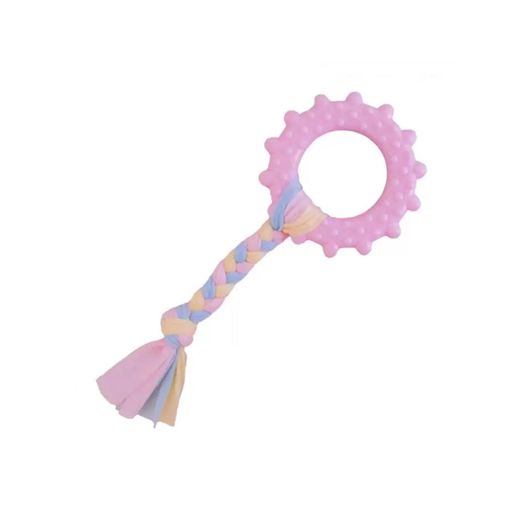 نقدم لكم لعبة الجرو EuroDog بعجلة الحبل الزهري والأسنان، مثالية لألعاب الجر والمضغ والجلب، بطول 18 سم. ليس فقط يوفر تصميم الحبل الودي للأسنان ترفيهًا لصديقك الفري، بل يساعد أيضًا في الصحة الفموية. تجمع هذه اللعبة المتينة للجرو بين المتعة والصحة في منتج واحد.