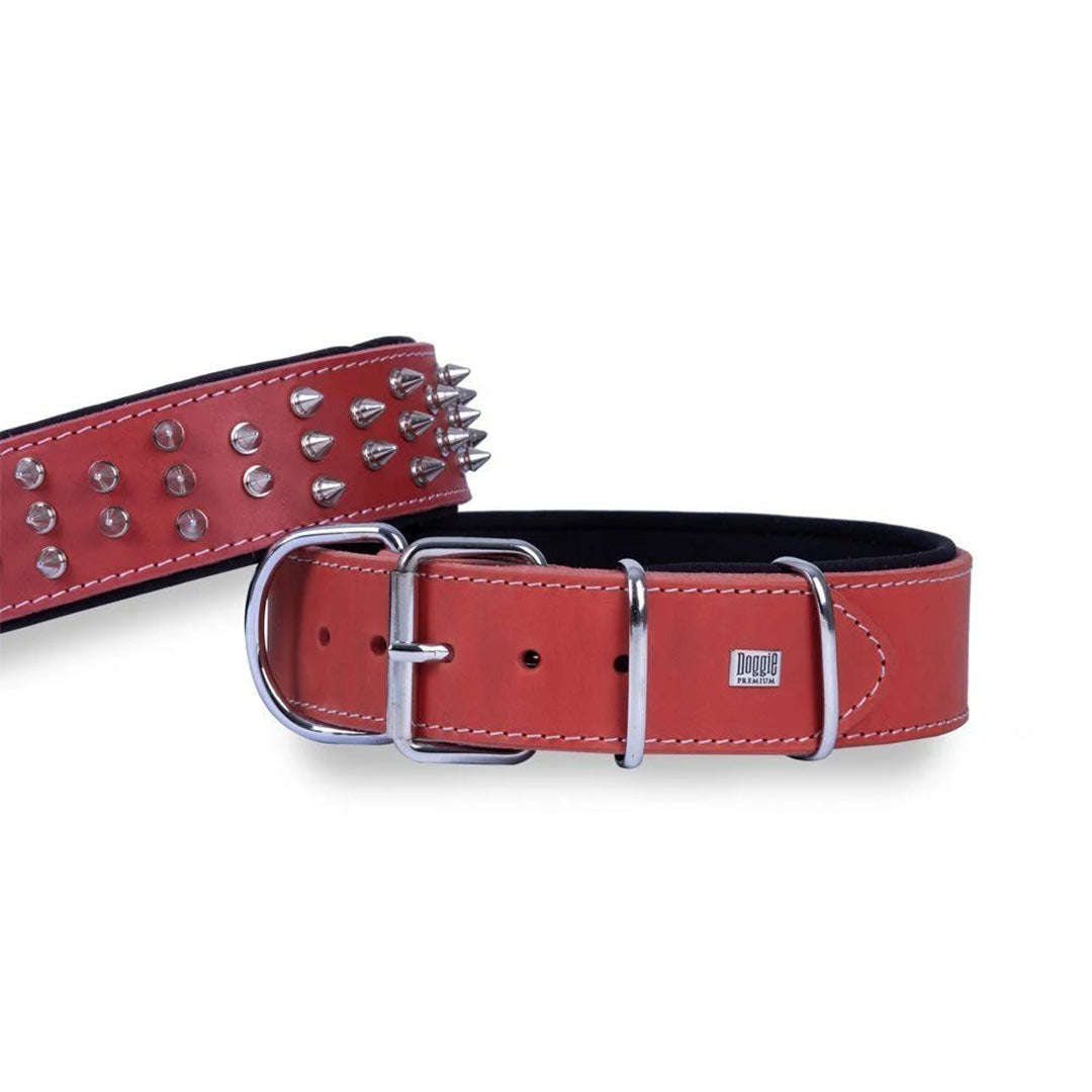 Doggie Çift Kat Gerçek Deriden El Yapımı Çivili Kirmizi Köpek Boyun Tasması 6x55-65cm