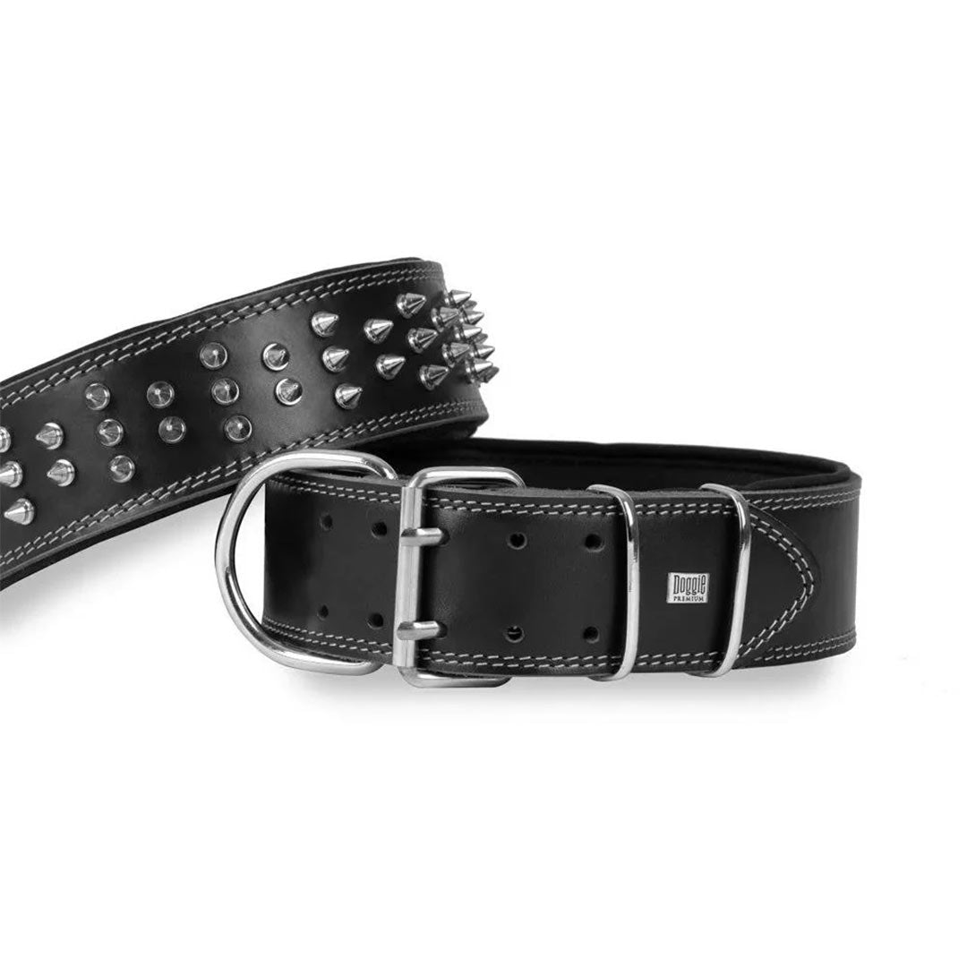 Doggie Çift Kat Gerçek Deriden El Yapımı Çivili Siyah Köpek Boyun Tasması 6x60-70 cm
