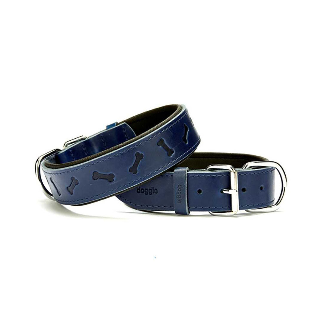 Doggie Konfor Deri Kemik Desenli Mavi Köpek Boyun Tasması 4x57-65Cm