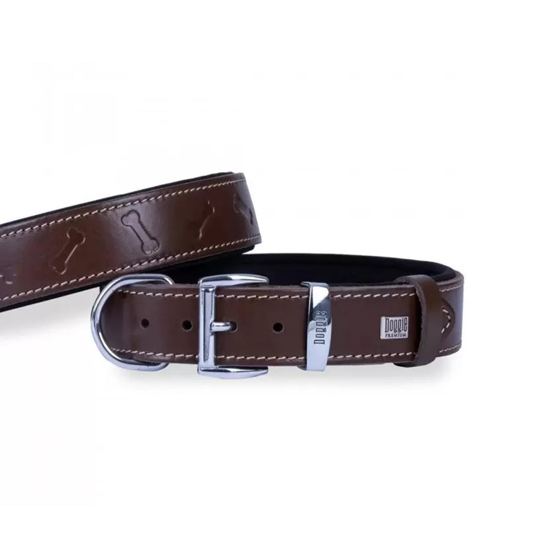 Doggie Konforlu Gerçek Deriden El Yapımı Kemik Desenli Kahverengi Köpek Boyun Tasması 4x57-65cm