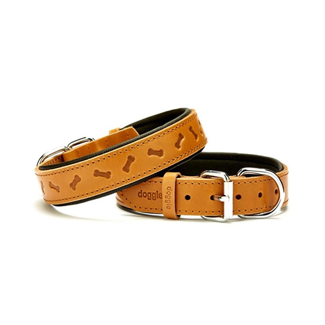 Doggie Konforlu Gerçek Deriden El Yapımı Kemik Desenli Kamel Köpek Boyun Tasması 3x42-50cm