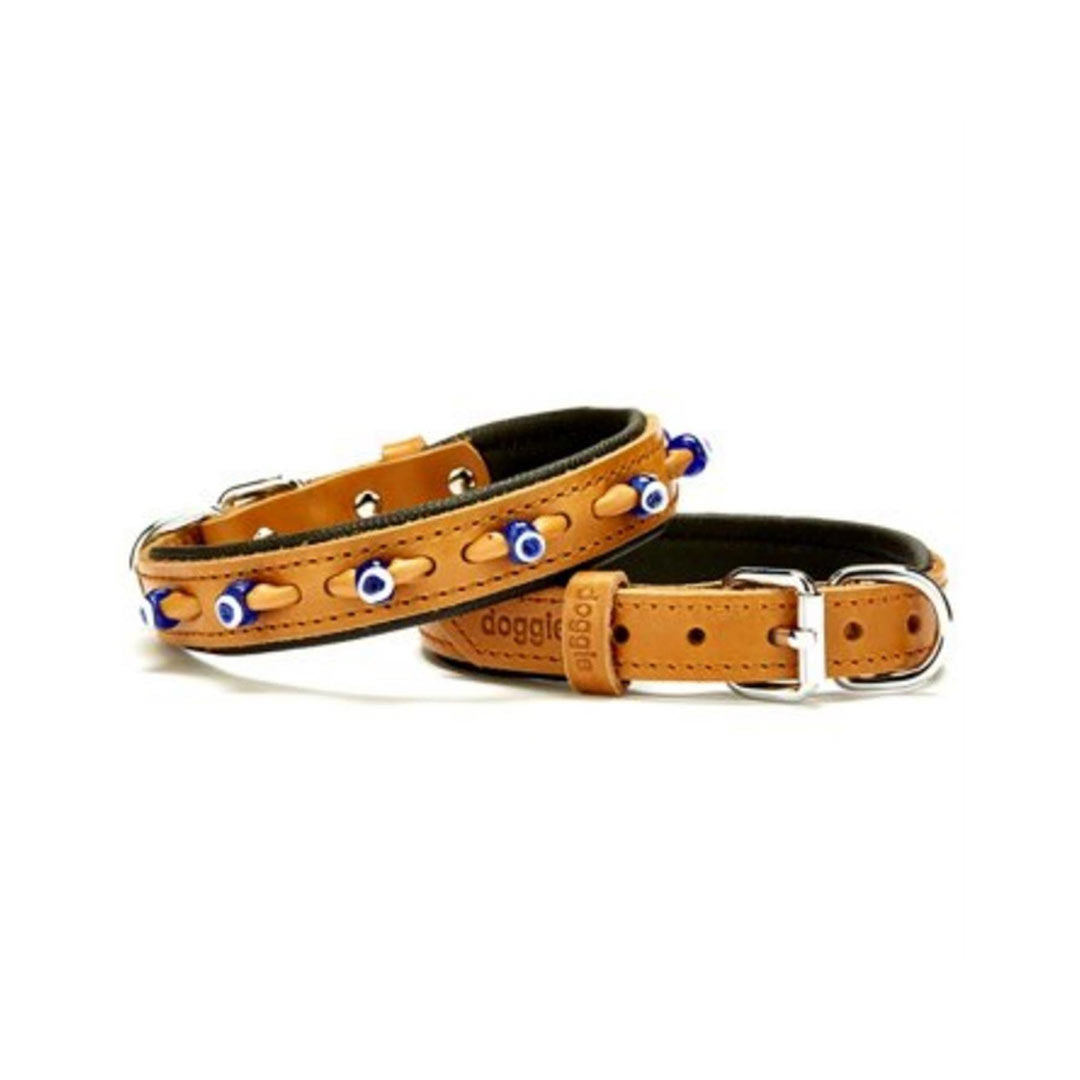 Doggie Konforlu Gerçek Deriden El Yapımı Nazar Boncuklu Kamel Köpek Boyun Tasması 2x35-40cm