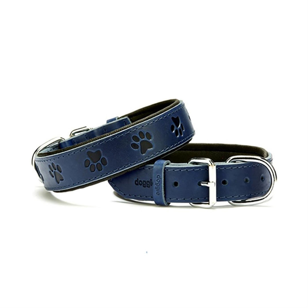 Doggie Konforlu Gerçek Deriden El Yapımı Pati Desenli Royal Mavi Köpek Boyun Tasması 3,5x47-55cm